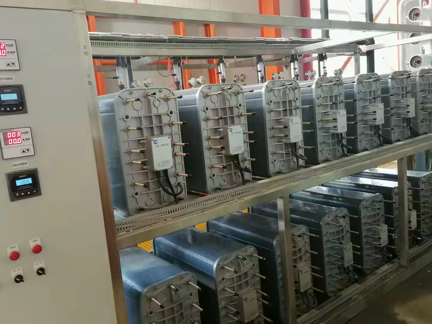 3. Reduced installation requirements: Compared with a mixed bed of similar water capacity, the EDI system is smaller in size. Its modular design allows for flexible configuration based on site height and layout. This modular design makes the EDI system easy to maintain during production.